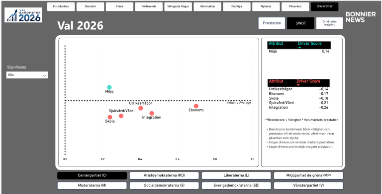Inför valet 2026 tog jag fram för Bonnier News räkning en valbarometer som presenterades i form av en digital dashboard.